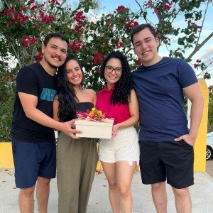 E para nos ajudar a montar o nosso novo lar, você pode escolher um item em nossa 'Lista de Presentes'. Temos opções online aqui no site, no site da Ferreira Costa (o link está na lista de presentes na aba 'Outras Listas') e listas físicas na Ferreira Costa e Thallyta Presentes.